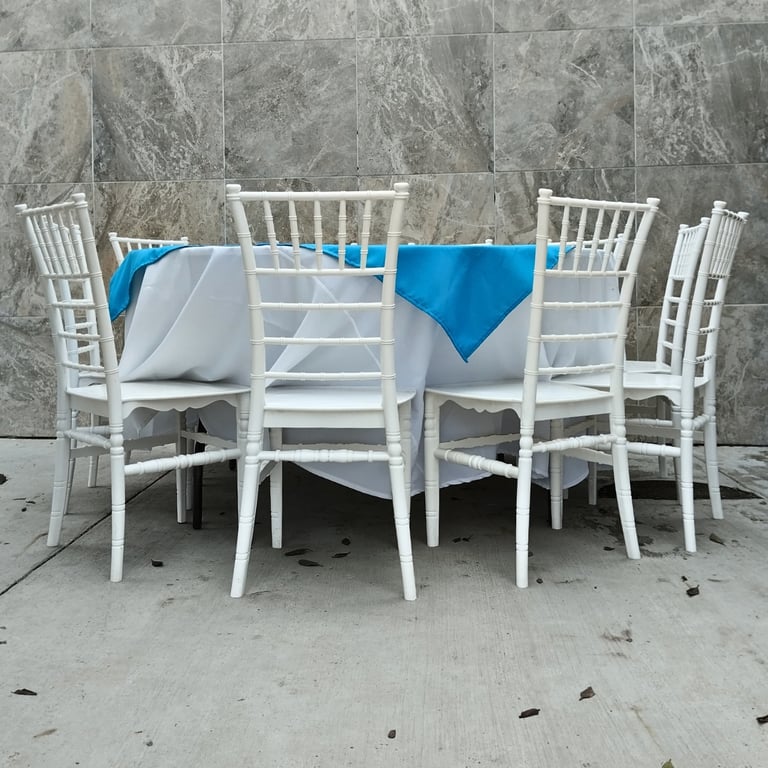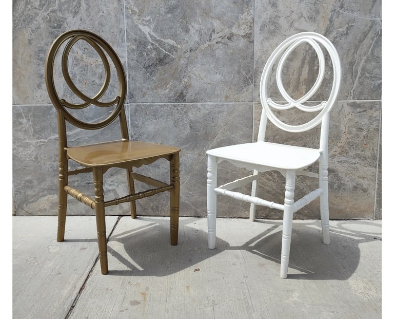 A diferencia de otros materiales, nuestra resina de alta calidad no se despinta ni requiere mantenimiento constante, manteniendo su brillo y elegancia evento tras evento. Disponibles en modelos icónicos como la silla Tiffany y Phoenix, y nuevos como la Cross Back; son ideales para realzar la estética de bodas y banquetes de lujo. El equilibrio perfecto entre belleza visual y durabilidad extrema.